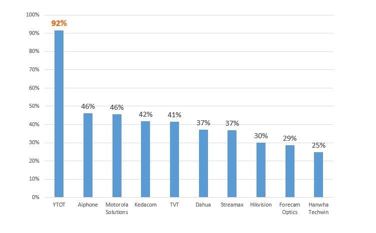 除了摩托羅拉外,榜單新面孔還包括思特威、Intelbras、Gallagher、福特科光電、藍(lán)色星際。除了Intelbras(巴西)與Gallagher(新西蘭)外,其余企業(yè)均來自中國。
